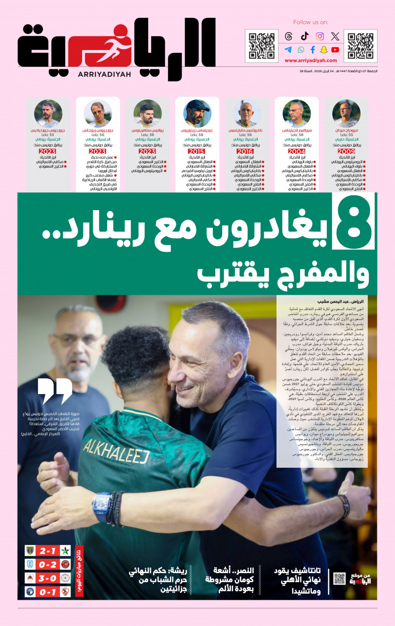 أنهى الاتحاد السعودي لكرة القدم التعاقد مع ثمانية من مساعدي الفرنسي هيرفي رينارد، مدرب المنتخب السعودي الأول لكرة القدم، الذي…